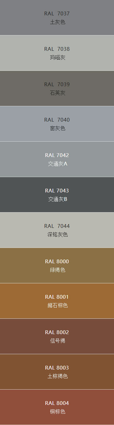 什么是RAL色卡?自從1927年,當RAL涉入色彩時,就創(chuàng)建了一種統(tǒng)一的語言,為豐富多彩的顏色建立標準統(tǒng)計和命名,這些標準在世界范圍內(nèi)被廣泛的理解和應(yīng)用。 4位數(shù)的RAL顏色作為顏色標準已達70年之久,至今為止已發(fā)展到200多種。無光澤的顏色基礎(chǔ)色卡為RAL-840HR,有光澤的為841-GL,這些顏色基本色塊滿足了大范圍的應(yīng)用,已被許多重要公司及研究機構(gòu)所使用。RAL-840HR及RAL-841GL 顏色注冊都作為顏色樣本應(yīng)用于設(shè)計中,同時它們也包括了安全和信號色符合DIN及ISO規(guī)定的顏色要求。